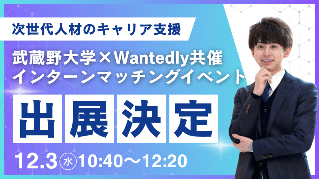 ウォンテッドリー株式会社は、同学部との包括連携協定に基づき、ビジネスSNS「Wantedly」を活用したキャリア教育やインターンシップ支援を推進しています。